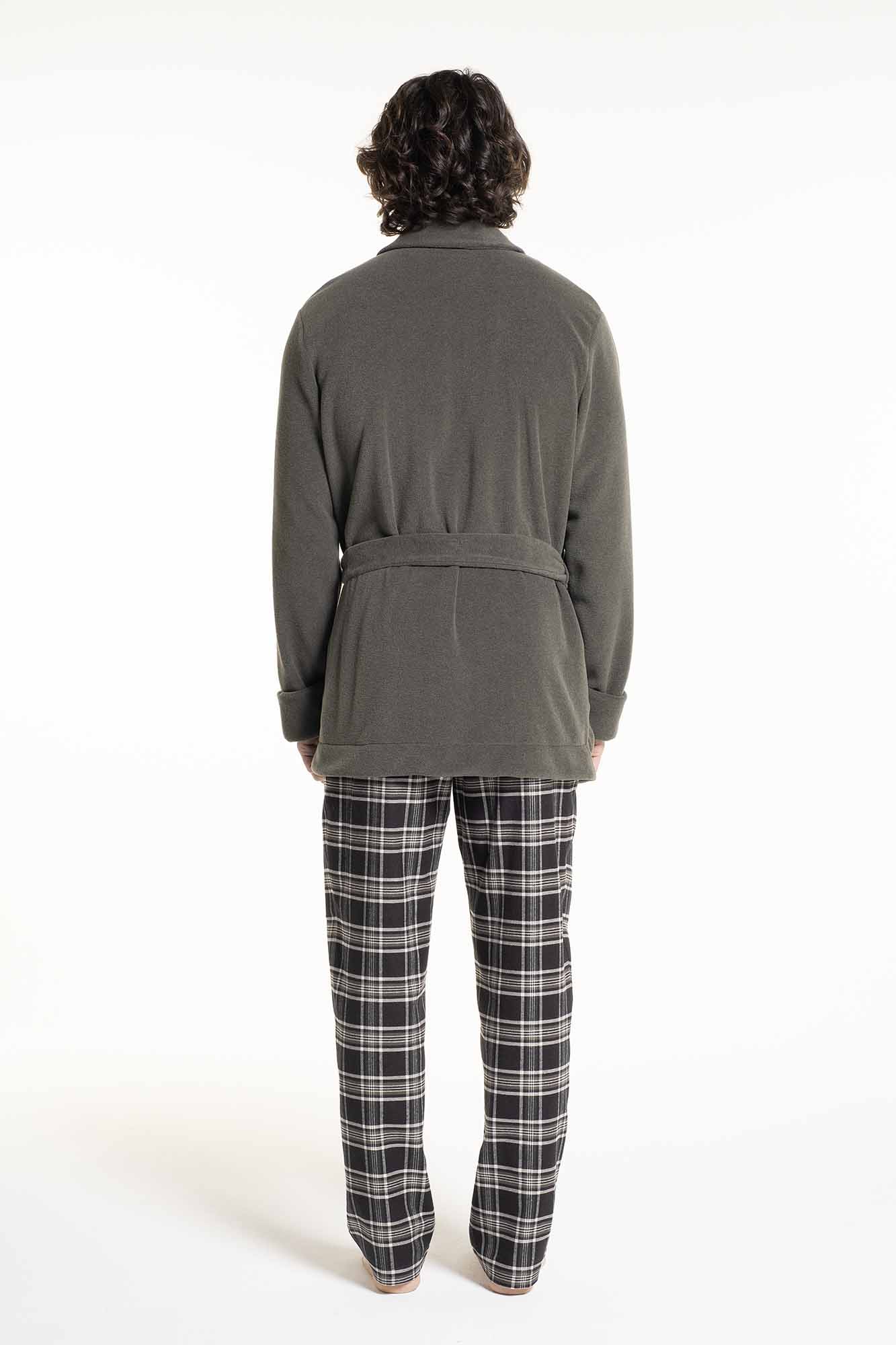Jacket in warm pile in blended viscose with revers neck, belt and front pockets.