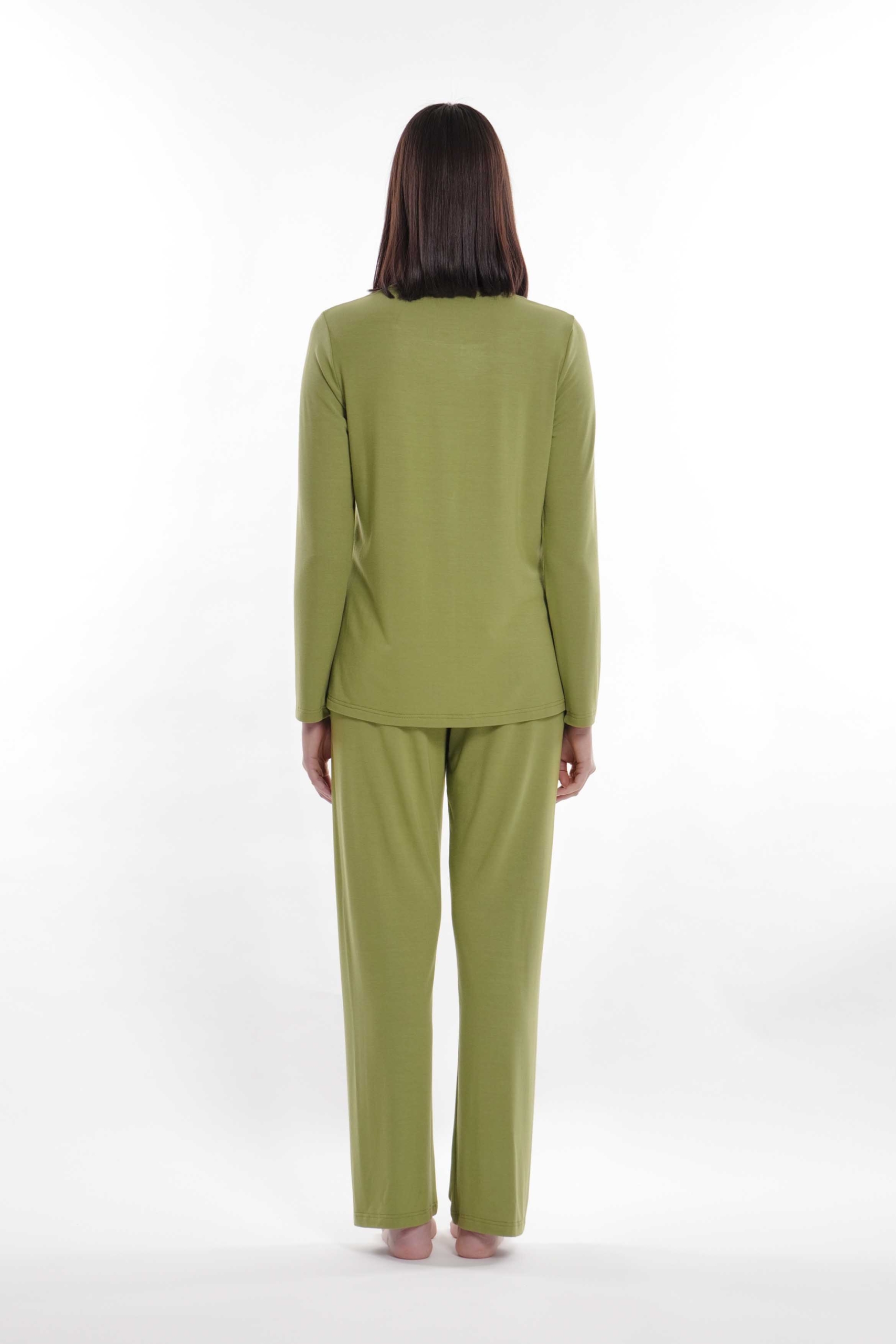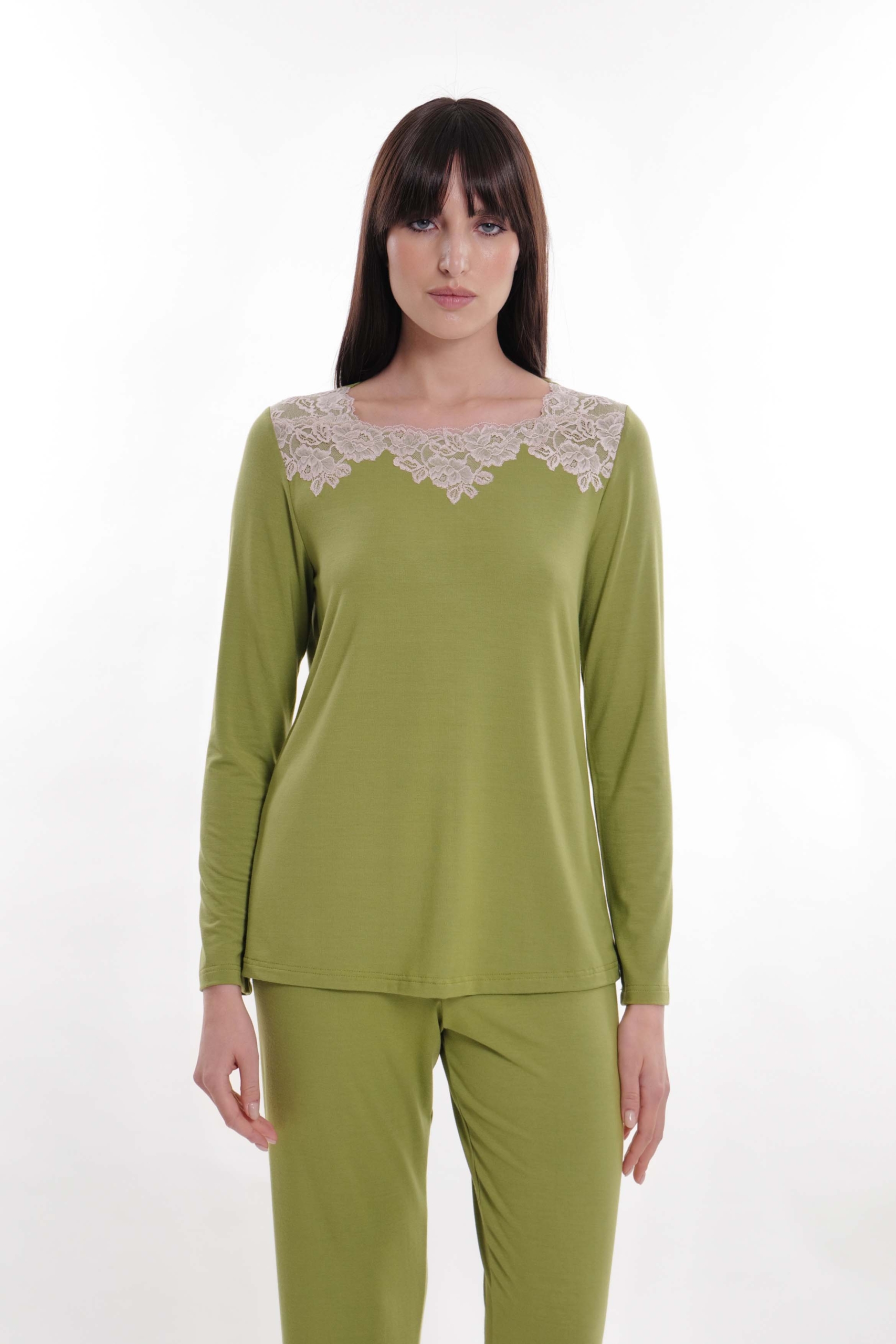 Pyjamas in Tencelâ„¢ micromodal jersey with contrasting lace on the boat neckline.