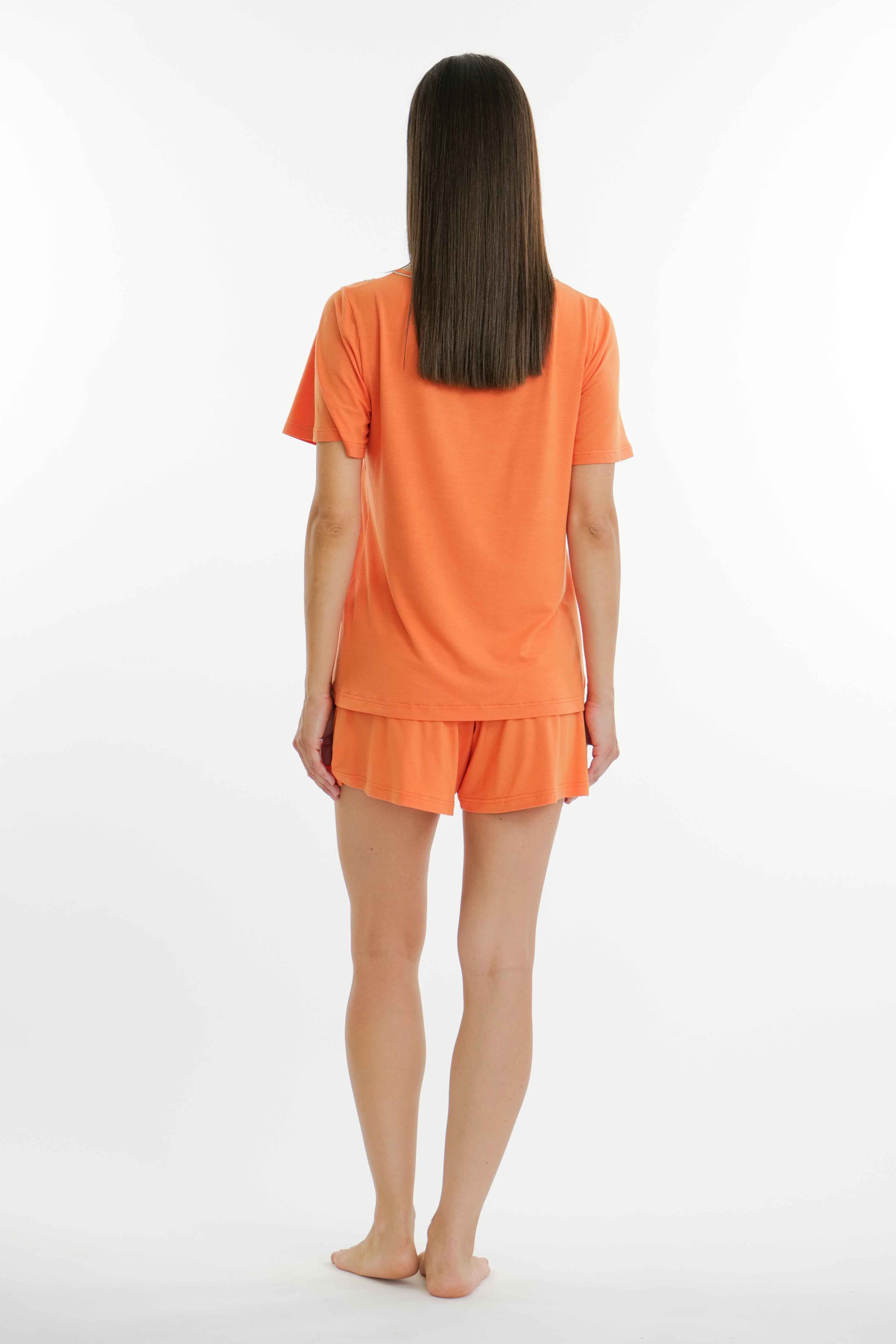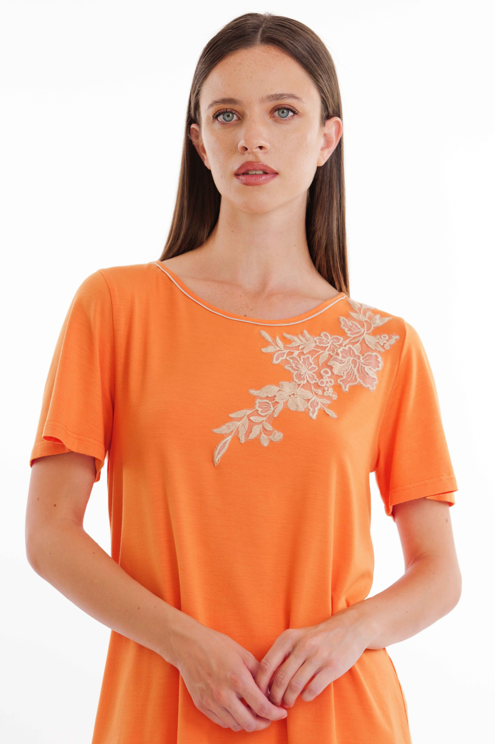 Pyjamas in Tencel micromodal jersey with beige floral application and finishing.