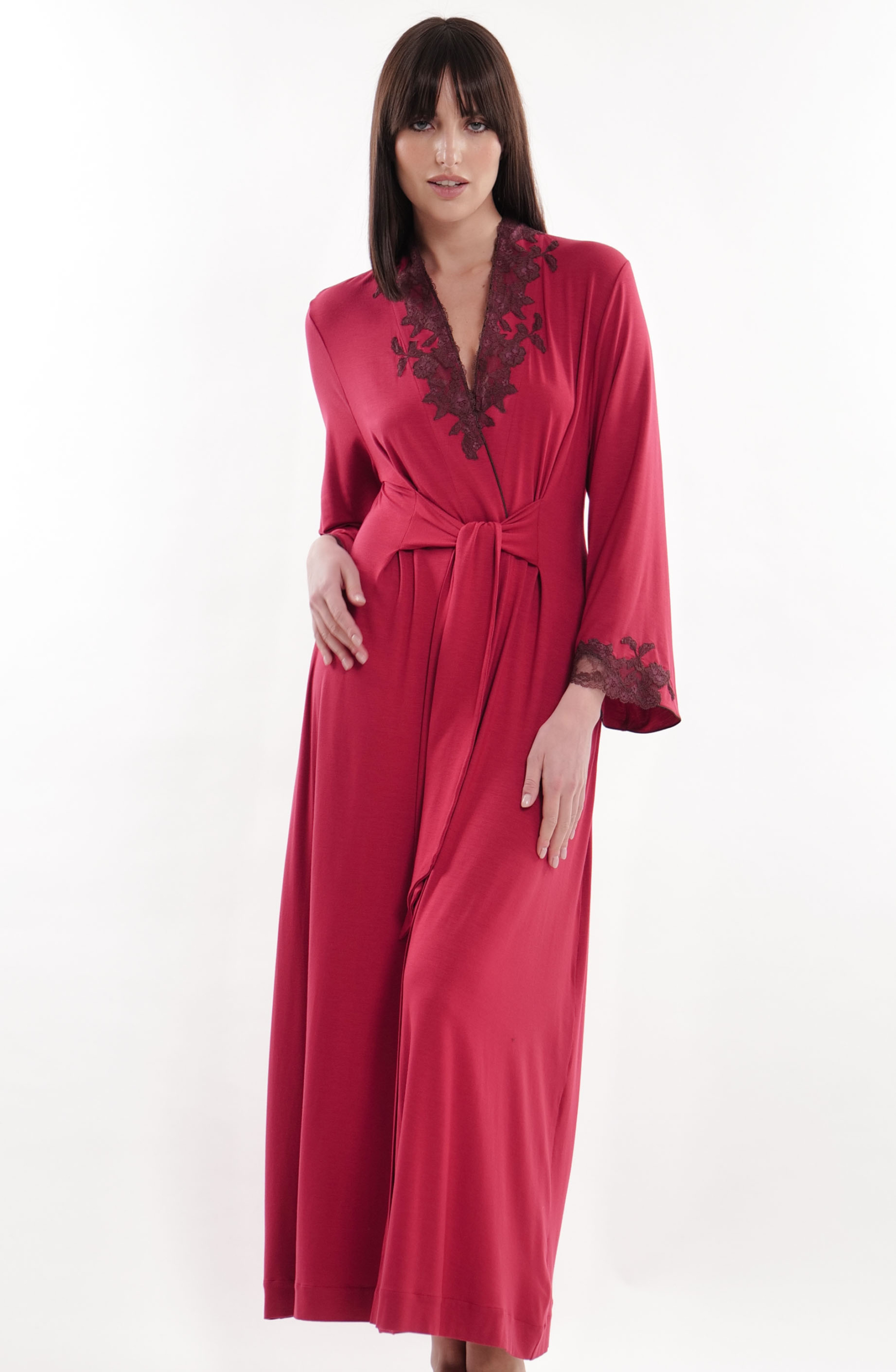 Robe in Tencelâ„¢ micromodal jersey with contrasting frastaglio lace on the neckline and sleeve.