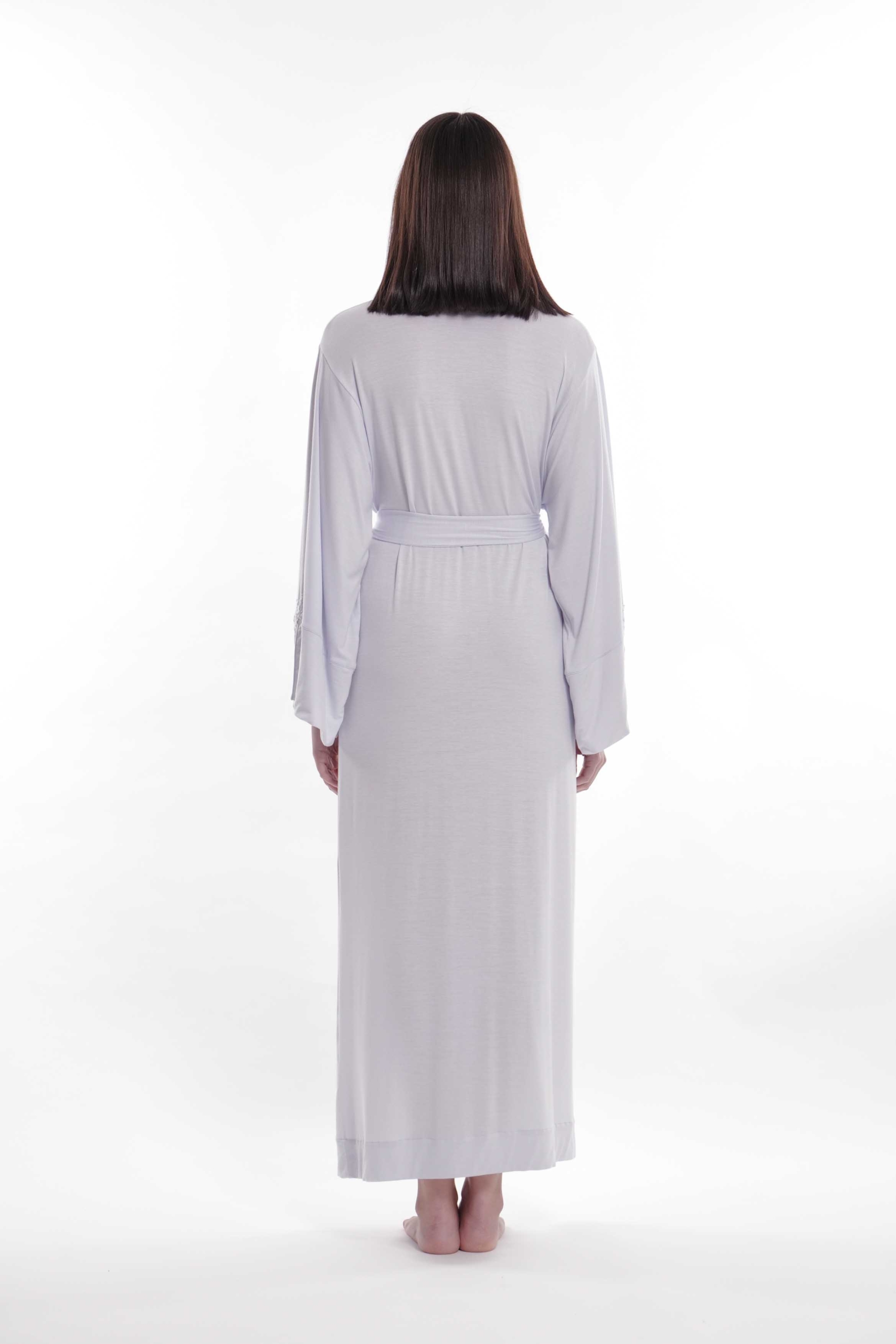 Robe in Tencelâ„¢ micromodal jersey with lace application on the sleeve with little side slit, belt and comfortable side pockets.