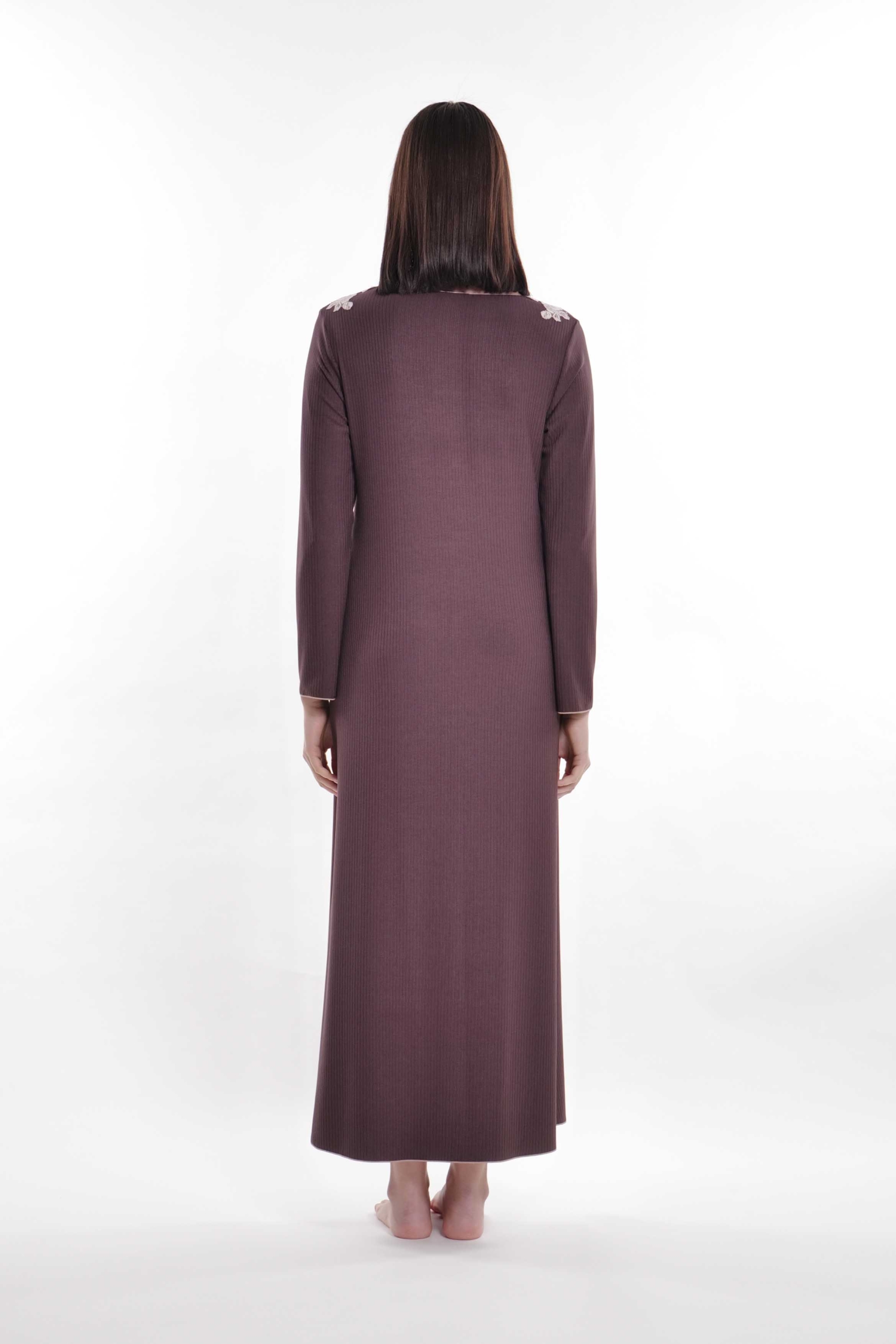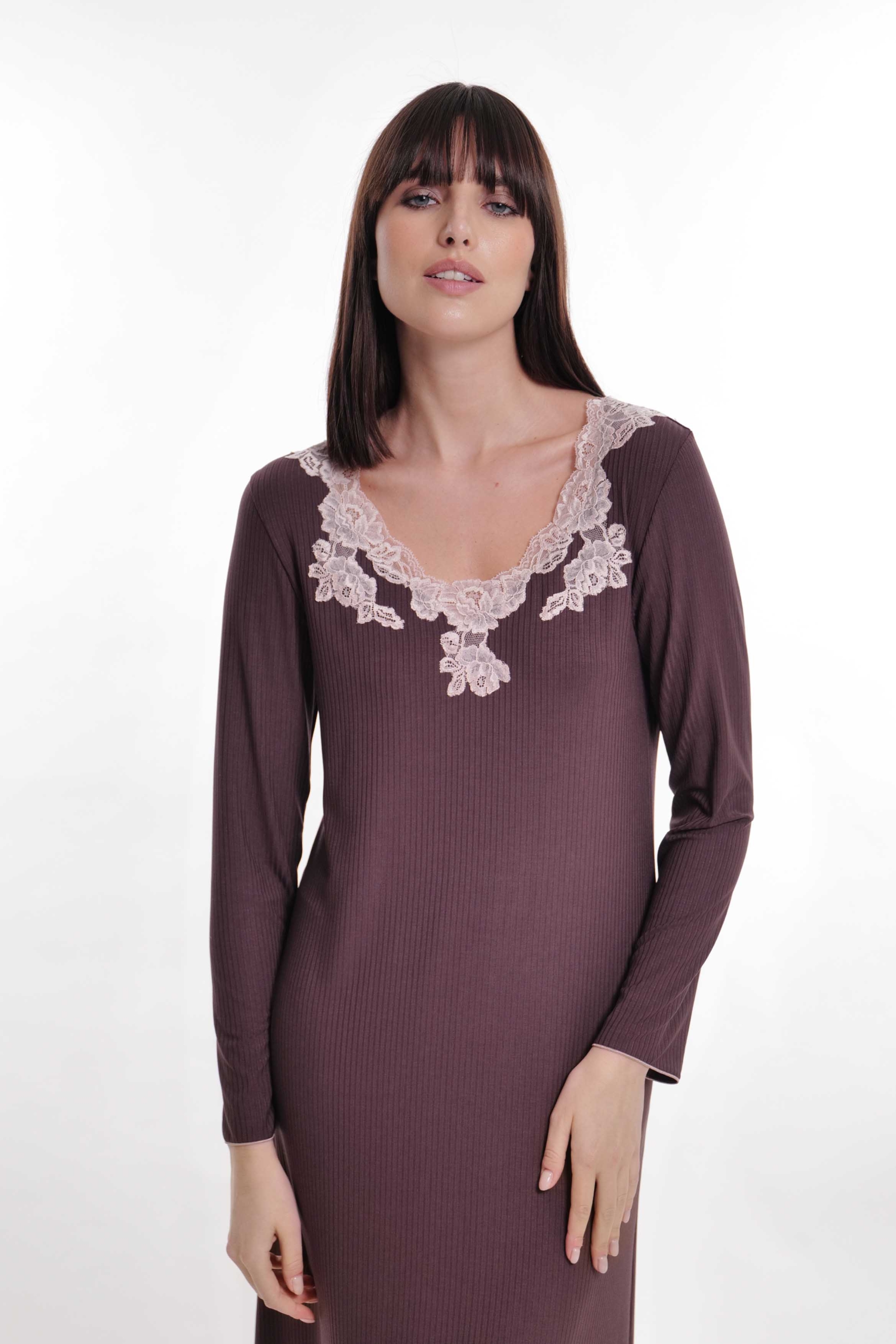 Camicia in jersey di costina bamboo con applicazione di pizzo in contrasto sullo scollo.