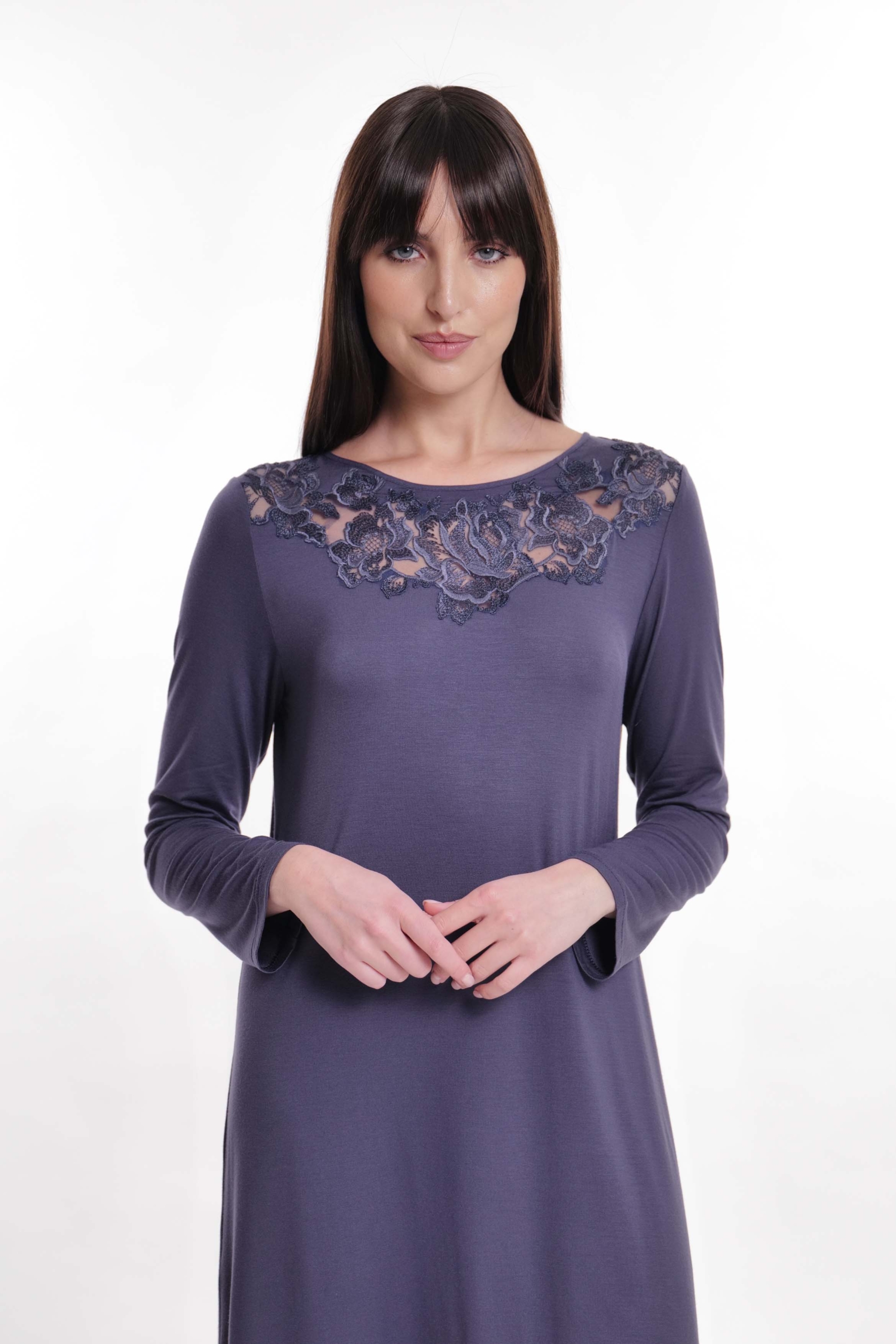 Camicia in jersey di micromodal Tencel™ con ricamo floreale su tulle sullo scollo.