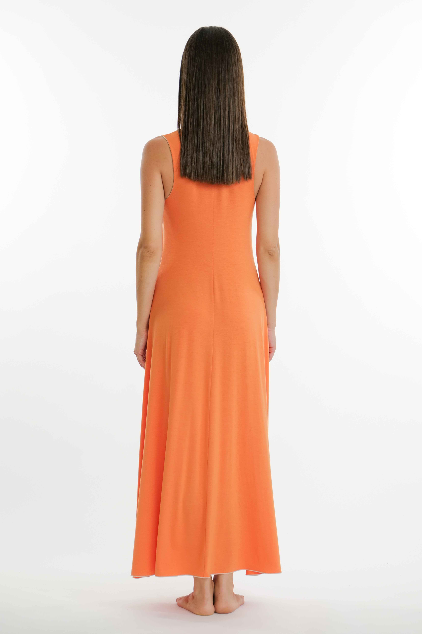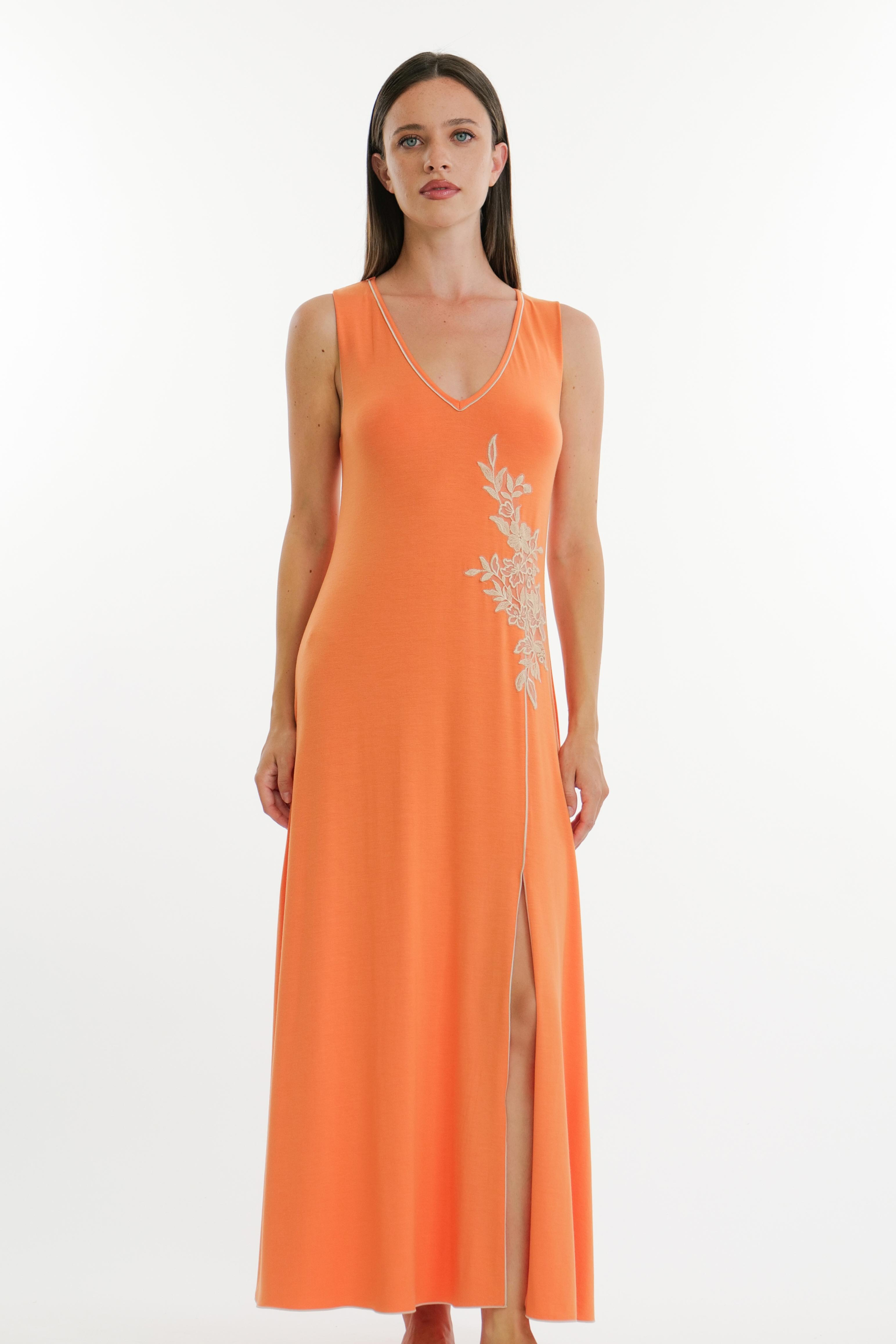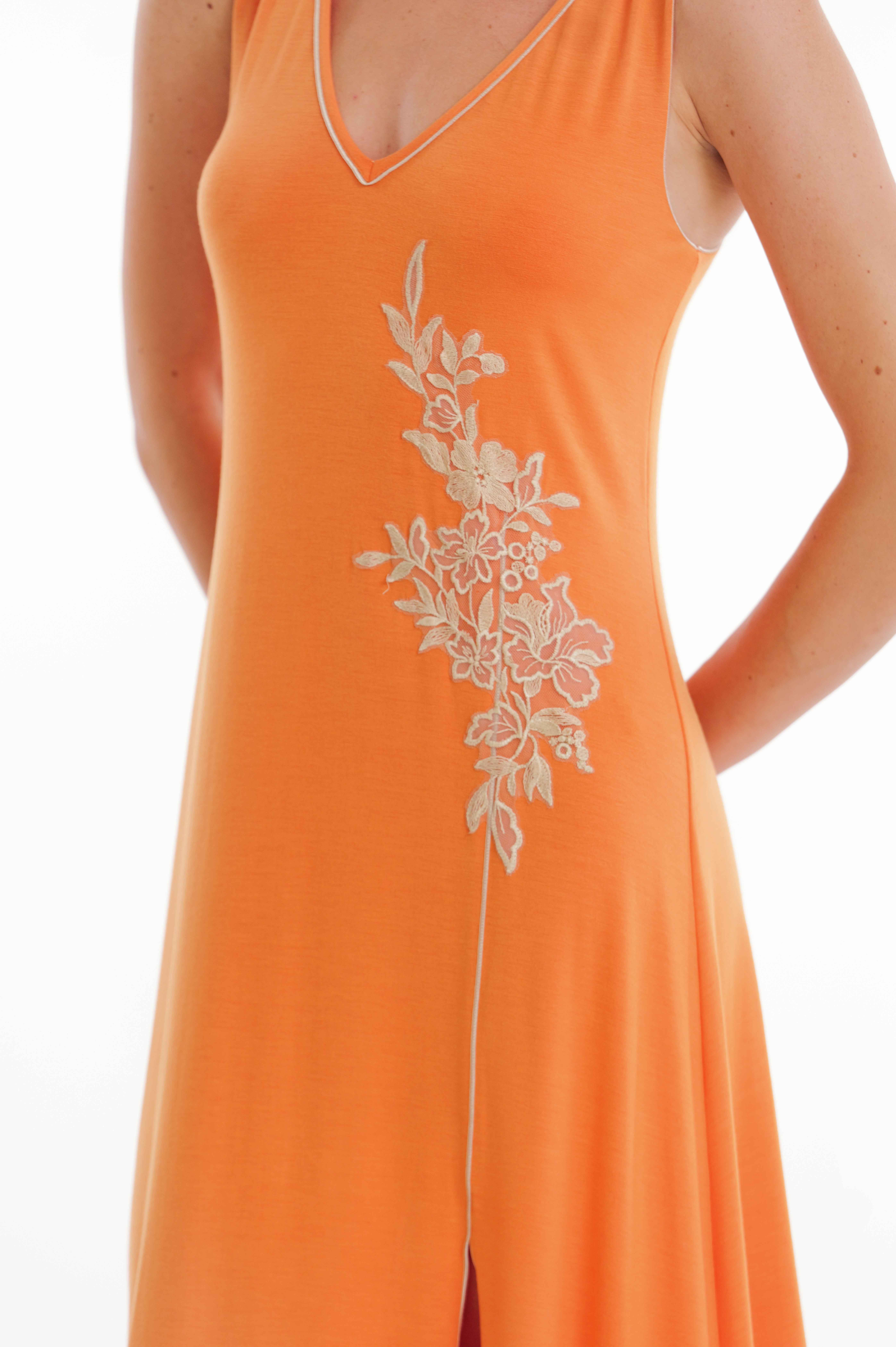 Camicia in jersey di micromodal Tencel con applicazione floreale e profili beige e spacco laterale.