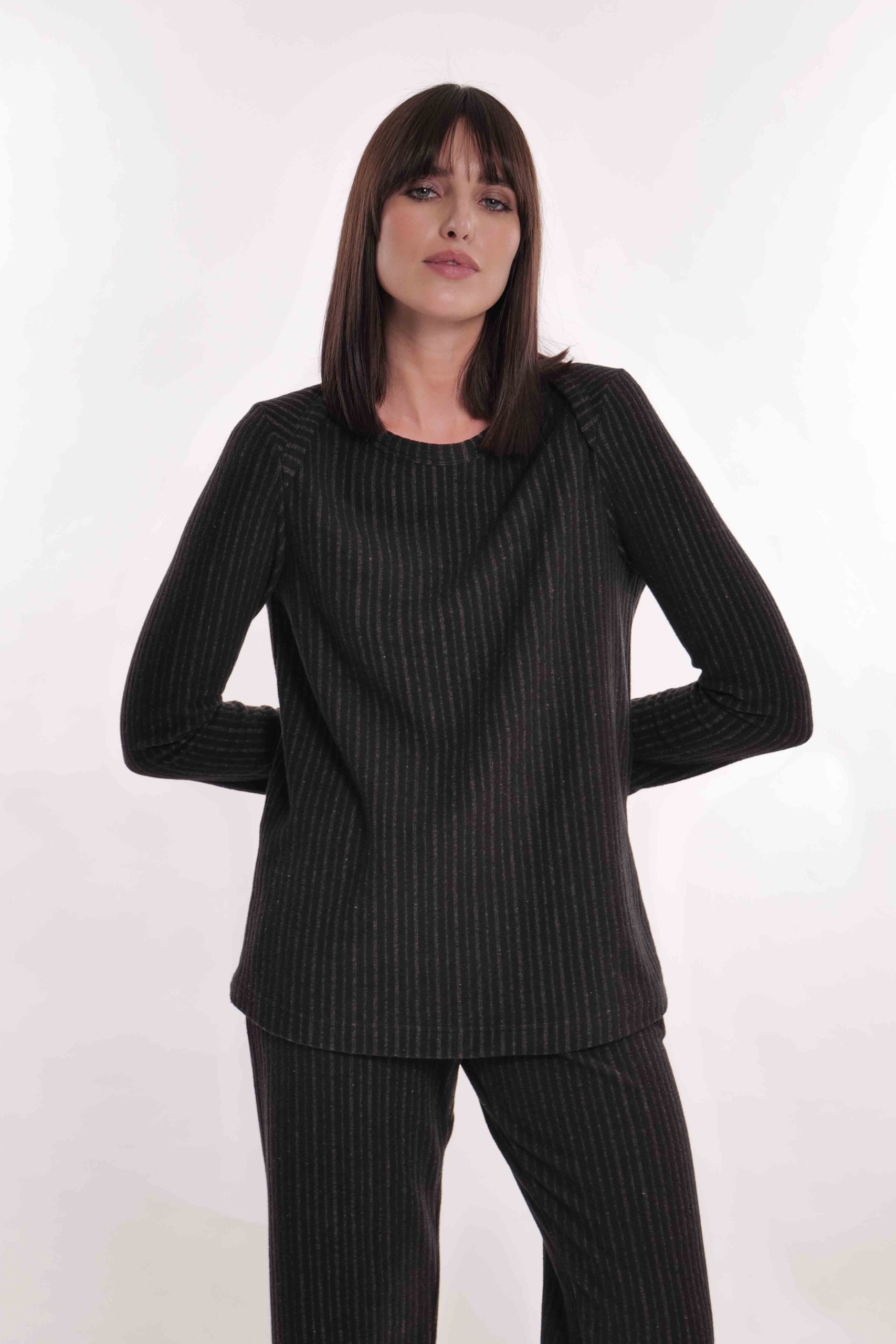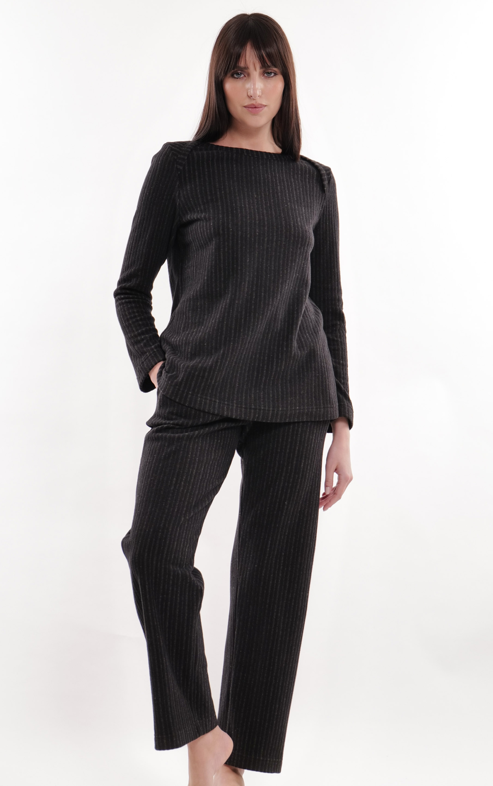 Lounge set scarto ago in misto cotone con scollo a barca. Pantalone con comode tasche laterali.