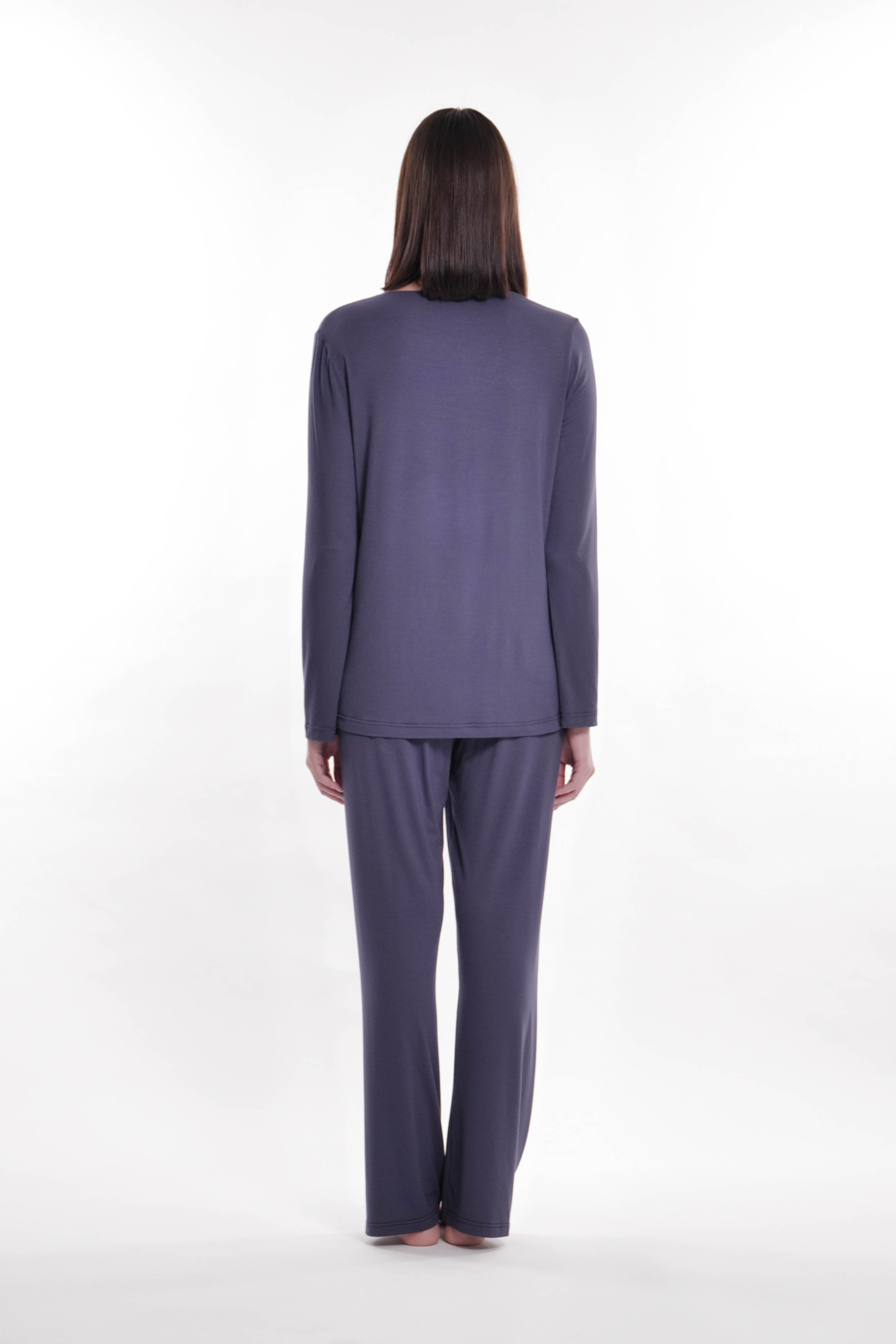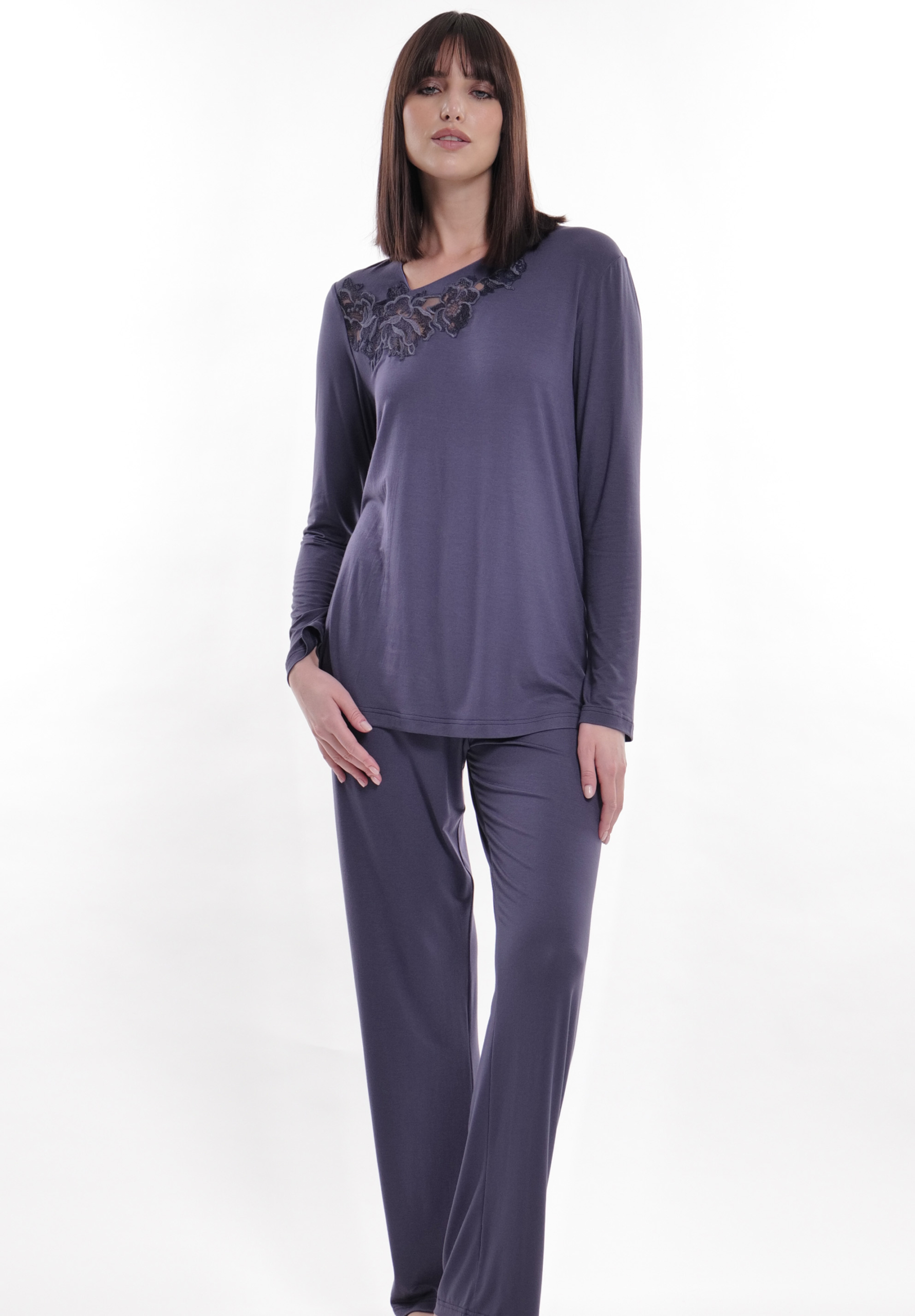 Pigiama in jersey di micromodal Tencel™ con ricamo floreale sullo scollo a V.
