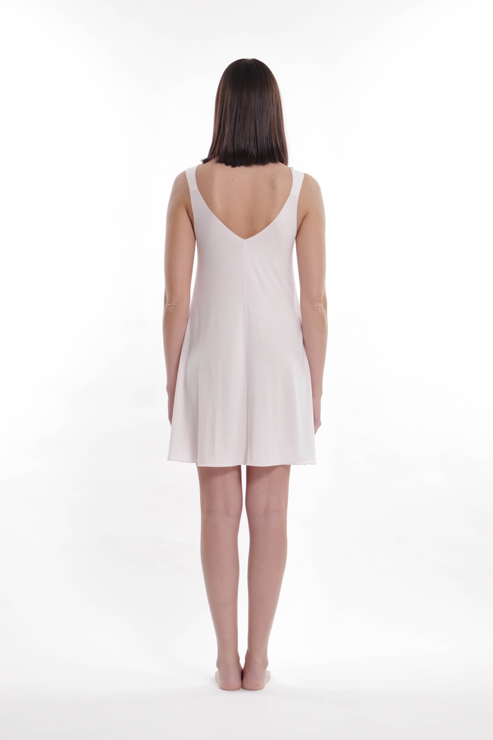 Sottoveste in jersey di micromodal Tencel™ con applicazione di un ricamo floreale sul lato fino allo spacco laterale.
